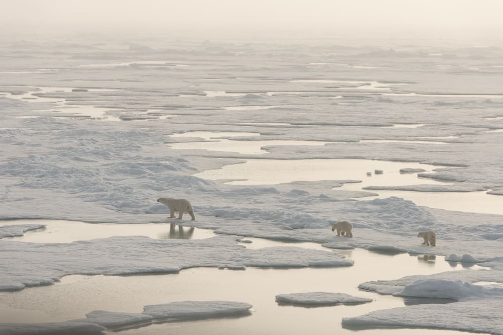 Eisbärin mit Jungtieren im Packeis. (© Vreni & Stefan Gerber)